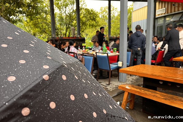 同事们围坐在一起,分享着美食与欢笑。雨水打在树叶上,发出沙沙的声响,仿佛是大自然的和声,为我们的聚会增添了几分浪漫与诗意。雨水似乎也被我们的欢乐感染,轻轻地拍打着地面,仿佛在为我们鼓掌。