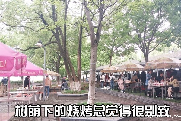 毕竟是老牌的烧烤圣地了,以前这树下可都是泥泞地,现在都铺上了砖,树荫下吃吃喝喝打打牌,这小日子,绝了。