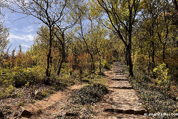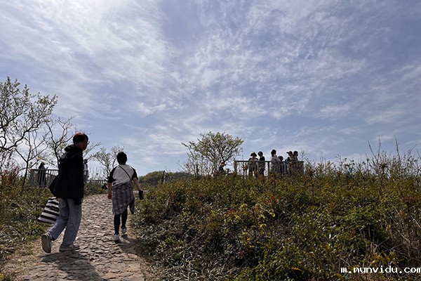 春风裹挟着草木的清气,在耳畔絮语。天朗气清,同事们身着轻便装束,三三两两结伴而行,起初石阶尚算平缓,还能轻松谈笑。行至半路,领头的几个年轻人早已不见踪影,中间的一拨走走停停,不时掏出手机拍照,或是扶着膝盖喘几口粗气。落在后头的几位,索性寻了块平整的石头坐下,掏出水壶慢饮,倒像是在自家庭院纳凉。