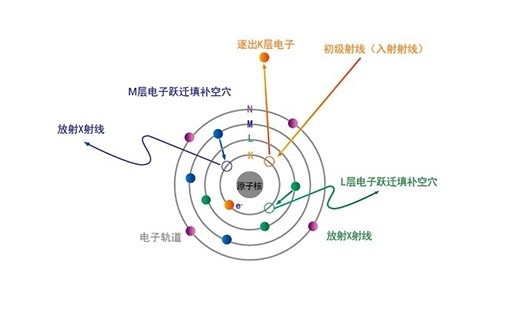 如果要得到某元素的特征X射线,需要对元素原子内层电子进行激发,使得内层电子获得一定能量,能够脱离原子核的束缚,从而在内层轨道形成电子空穴,当较高能级电子填补这一空穴时,才会发射一定能量的特征X射线,这个过程就是X射线的激发,也就是X射线荧光的基本原理。